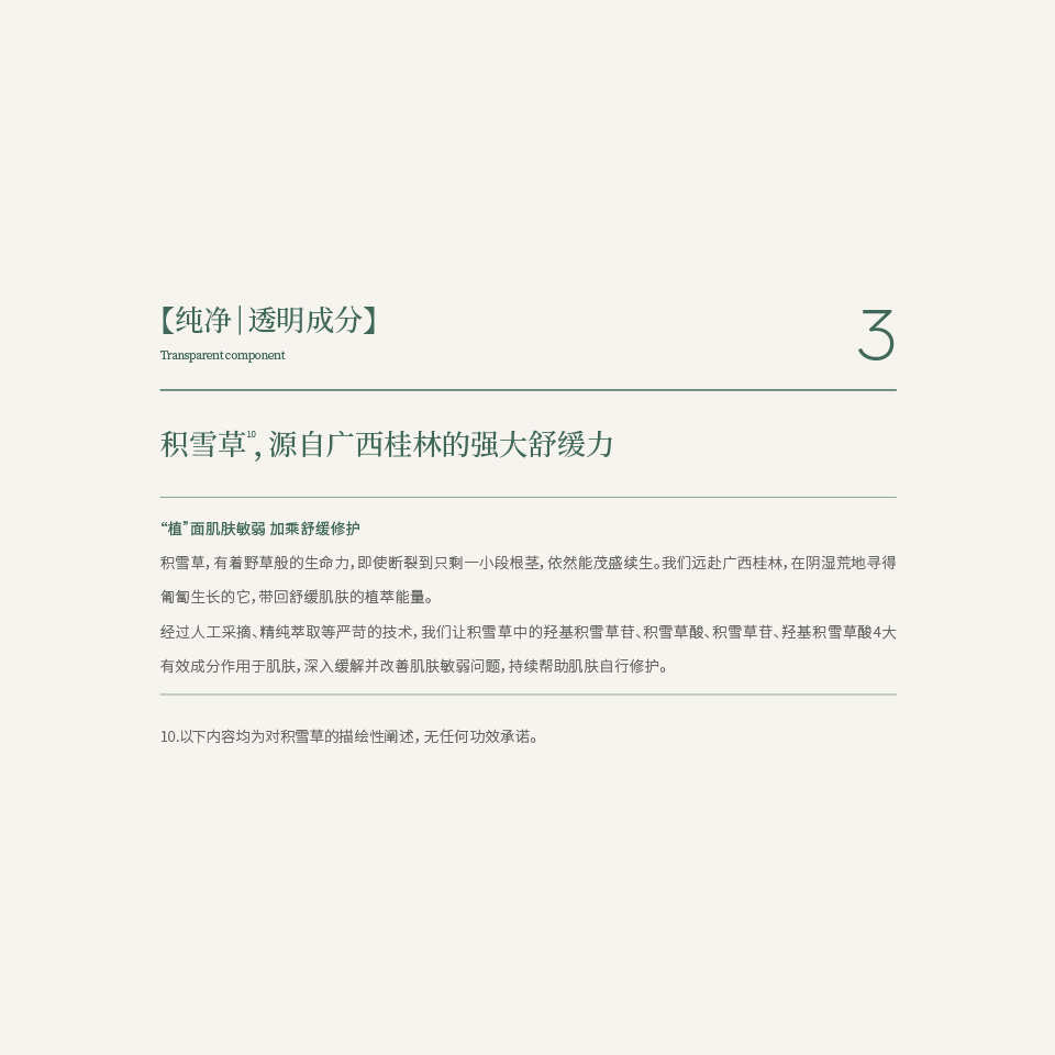 10.以下内容均为对积雪草的描绘性阐述,无任何功效承诺。